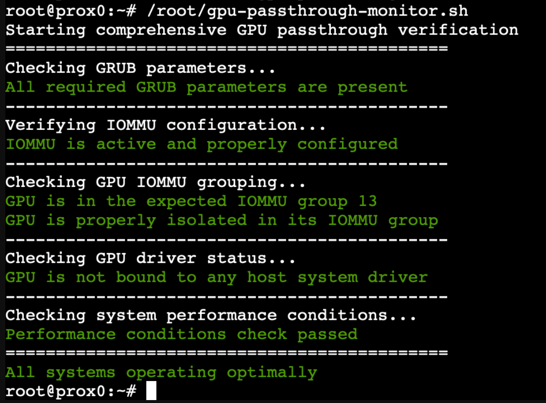 Remember that maintaining a GPU passthrough configuration is an ongoing process. Regular monitoring, timely adjustments, and systematic update management are key to ensuring long-term stability and performance. The tools and procedures we've established provide a framework for this maintenance, but they should be adapted and refined based on your specific needs and experiences.