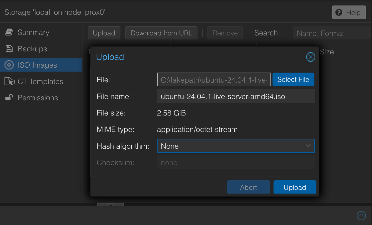 Click 'Upload' and select your downloaded Ubuntu ISO
