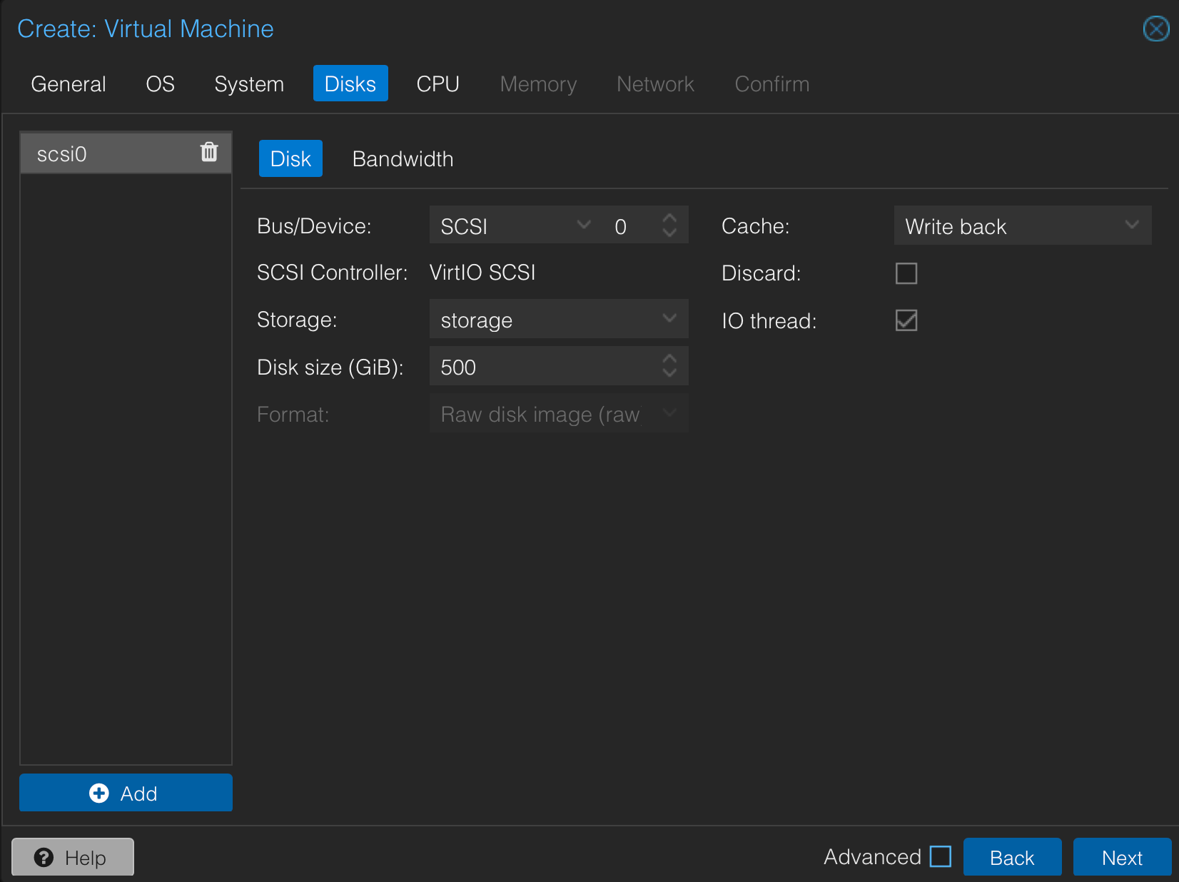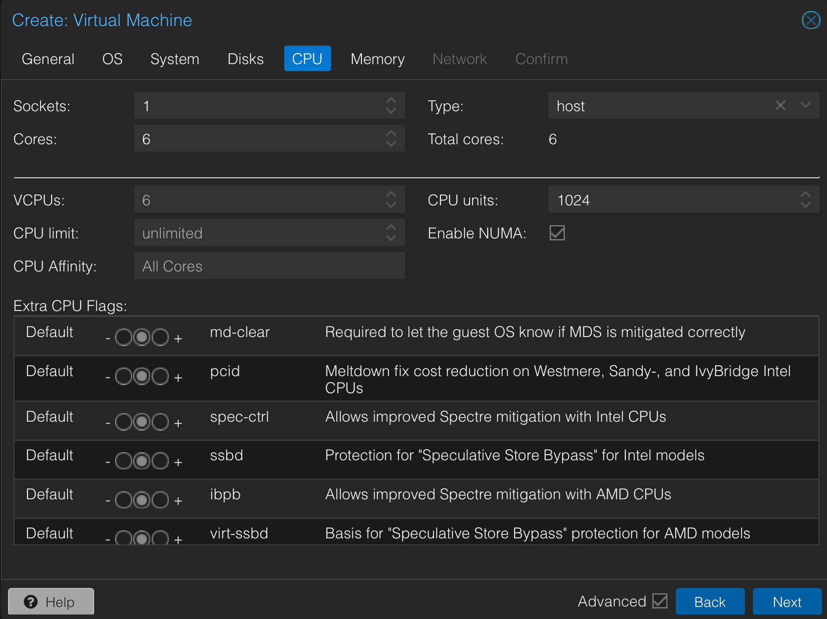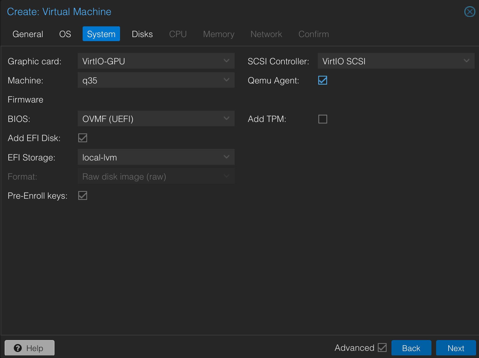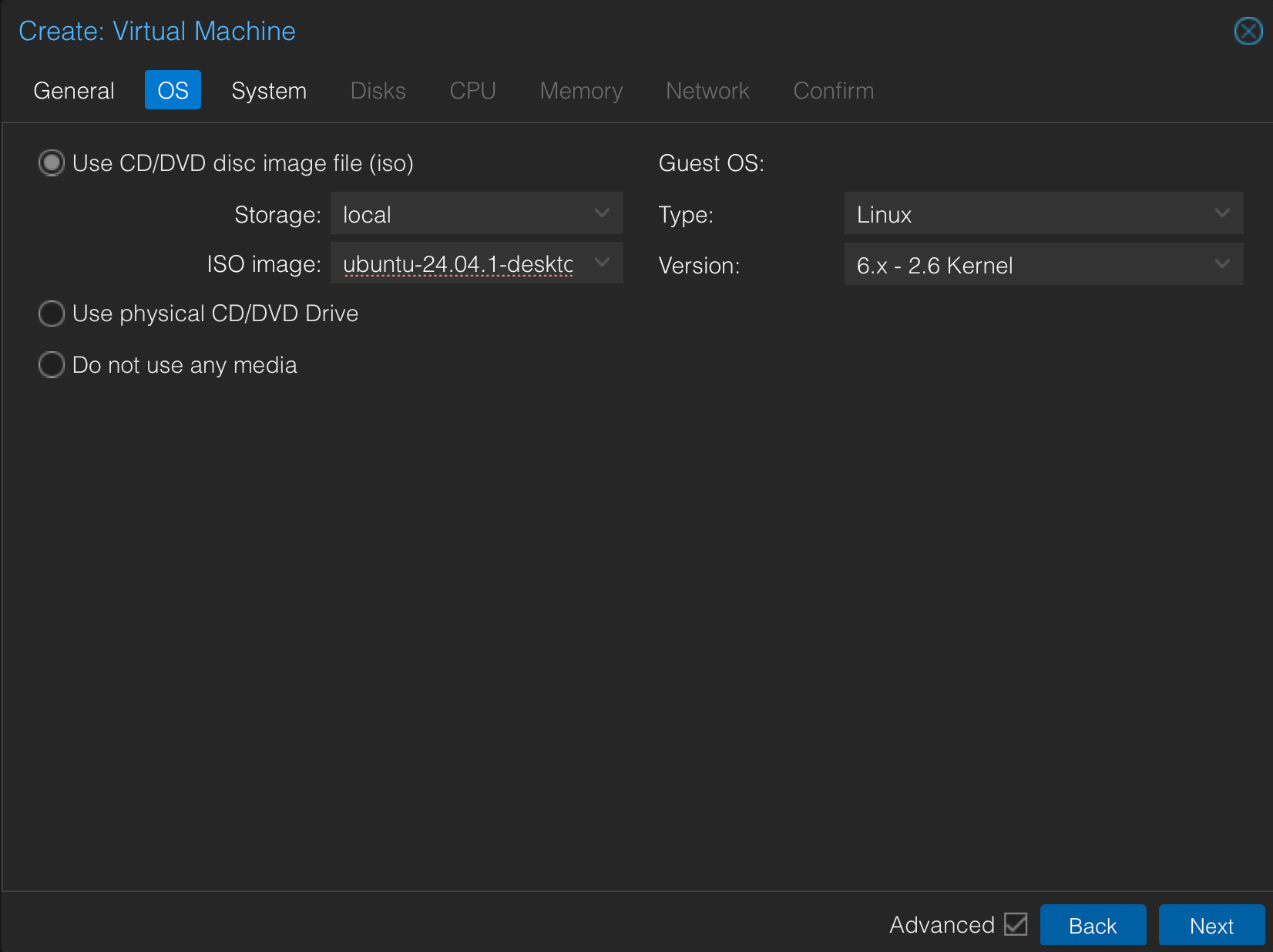 These selections ensure Proxmox applies the correct optimization flags for a Linux guest operating system.