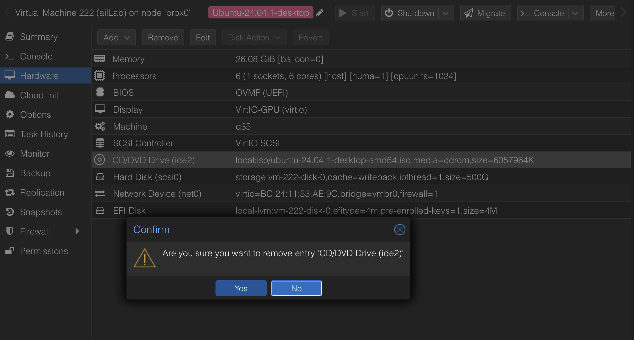 - A fully functional Ubuntu Desktop 24.04.1 virtual machine running on Proxmox